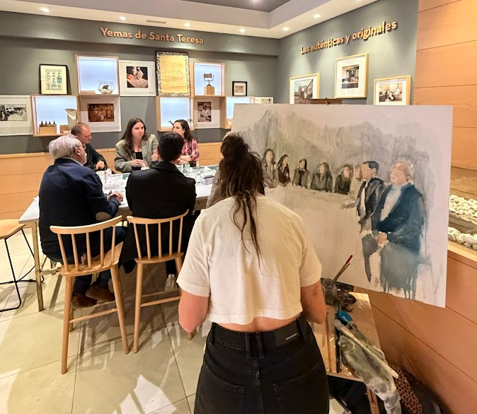 Uno de los elementos distintivos del ciclo es la participación de la artista Lara Rubín de Celix, quien ilustró en directo la tertulia, capturando la esencia del encuentro a través de su obra.